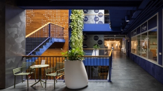 Samotná farba však nestačí pre vytvorenie dobrého interiéru. K tomu je potrebné doplniť priestor vhodnými materiálmi v kombinácii s jednotlivými prvkami, aby výsledný dojem bol harmonický a útulný. V Lightparku sme pracovali i s výrazným stvárnením osvetlenia, textúrou a štruktúrou materiálov i jemnou grafikou v detailoch priestoru. Dominantou tohto priestoru je komunikačné jadro s obkladom z tíkového dreva, takmer tatranskom profile, je využité pre osadenie vertikálnej záhrady , ktorá vnesie do interiéru potrebný život, (v čase realizácie najvyššia na Slovensku). Tento priestor bol oživený a doplnený grafikou vo forme rozpixelovania obrazu do polguľových prvkov.