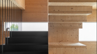 Vzhľadom na to, že dom je okrem severnej akumulačnej železobetónovej steny postavený z drevených CLT panelov, sú tieto v rámci interiérového riešenia vo veľkej časti domu priznané. To dodáva ináč pomerne minimalistickému interiéru pocit tepla a emóciu pohody. Prízemie stabilizuje podlaha z čiernej žuly z ktorej je aj schodisko, kuchynská pracovná doska a komoda pri krbe. Teplotu dreva vyrovnáva biela murovaná predstena v severnej časti kuchyne a obývacej izby. Aj v podkroví je priznané drevo, tentoraz v kombinácií s čiernym kobercom a bielymi stenami. CLT panely boli použité aj na výrobu niektorých nábytkových prvkov.