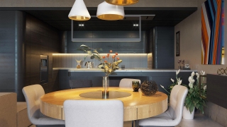 Touto úpravou sme sa snažili maximalizovať priestorové a farebné možnosti bytu v novostavbe. Prepojením obývacej časti bytu a kuchyne sa vytvoril veľký priestor nadštandardnej obývacej úrovne. Dostatok prirodzeného svetla sme skombinovali s dizajnovým osvetlením tak, aby vynikla čierna slonovinová farba a všetky odtiene tmavej. Farebnosť a osvetlenie má kľúčový vplyv na celkový dizajn výsledku. Práve tmavá farba je ideálna pre vytváranie výrazných a intenzívnych efektov. Skombinovali sme ju so šedými odtieňmi farieb, čím sa vytvoril dojem elegancie a priestorovej hĺbky. Čierna farba je symbolom vysokej úrovne elegancie a modernosti.